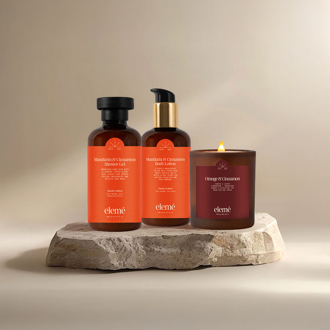 Spiced citrus, comforted skin, and evenings that glow — a ritual made for golden light and soft moments.
